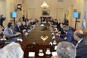 Durante esos días afirmó públicamente que exigiría la renuncia de varios funcionarios con mandatos todavía no cumplidos, como la Autoridad Federal de Servicios de Comunicación Audiovisual, el Banco Central, y el Ministerio Público, todos ellos órganos independientes del Poder Ejecutivo.[23]