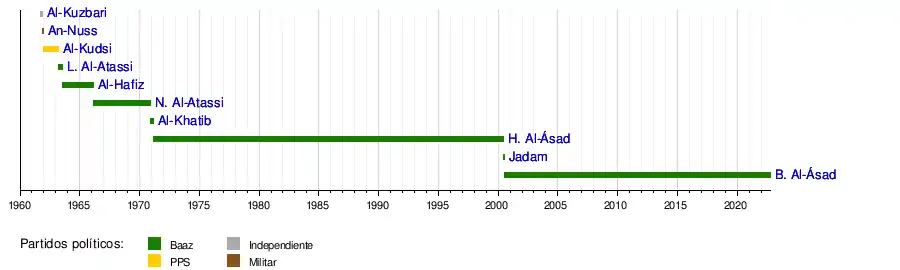 1930-2000 | 22 de febrero de 1971 | 10 de junio de 2000 | Partido Baaz Árabe Socialista - Región Siria/Frente Nacional Progresista | ||