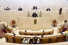 El titular de la Presidencia coordina los trabajos del Parlamento y de sus Comisiones, y preside y dirige los debates. Asimismo, preside la Mesa del Parlamento, la Junta de Portavoces y la Diputación Permanente.[1]