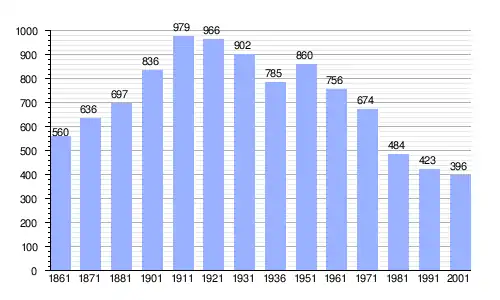 Gráfica de evolución demográfica de Prestine entre 1861 y 2001 |