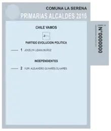 - «Chile Vamos define nueva exigencia para candidatos que compitan en primarias legales de alcaldes». El Mercurio. 4 de marzo de 2016. Consultado el 28 de marzo de 2016.