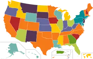 2,716 | 16,255,014 | 43 (AL, AK, AZ, AR, NC, SC, SD, DE, Fl, GA, GU, HI, ID, Il, IN, VI, KS, KY, ME, MD, MA, MI, MN, MS, MO, MT, NE, NY, NJ, NM, OH, OK, OR, PA, RI, TN, TX, VA, WV, WA, DC, WI y WY) |