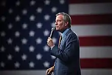 - Bill de Blasio [@BilldeBlasio] (16 de mayo de 2019). «Today I am proud to announce my candidacy for president of the United States of America, because it's time to finally put working people first.» (tuit). Consultado el 16 de mayo de 2019.