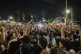 Las protestas egipcias de 2019 consisten en manifestaciones de miles de personas en El Cairo, Alejandría, Damieta y otras cinco ciudades egipcias a partir del 20 y 21 de septiembre de 2019 en las que los manifestantes pidieron que el presidente de Egipto, Abdelfatah Al-Sisi, fuera removido del poder.[21][22] Las fuerzas de seguridad respondieron con gases lacrimógenos, balas de goma, balas vivas y, a partir del 6 de octubre de 2019, se realizaron 3000 arrestos,[23] basados en datos del Centro Egipcio de Derechos Económicos y Sociales, la Comisión Egipcia de Derechos y Libertades y la Red Árabe de Información sobre Derechos Humanos.[24][25] Entre los detenidos prominentes estaban la abogada de derechos humanos Mahienour El-Massry,[26] periodista y exlíder del Partido de la Constitución Khaled Dawoud y dos profesores de ciencias políticas en la Universidad de El Cairo, Hazem Hosny y Hassan Nafaa.[24] La ola de arrestos fue la mayor en Egipto desde que Sisi se convirtió formalmente en presidente en 2014.[27] Human Rights Watch pidió que todos los arrestados por expresar pacíficamente sus opiniones fuesen puestos en libertad de inmediato.[28] Amnistía Internacional describió que el gobierno de Sisi fue "sacudido en su núcleo" por las protestas del 20 al 21 de septiembre y que las autoridades habían "lanzado una represión a todo gas para aplastar manifestaciones e intimidar a activistas, periodistas y otros en silencio".[29] Dos mil personas, incluidos representantes de la Asociación de Profesionales del Sudán (SPA), protestaron en Jartum el 26 de septiembre en apoyo de Waleed Abdelrahman Hassan, un estudiante antislamista sudanés detenido por las autoridades egipcias, quien hizo una confesión forzada en la televisión MBC Masr.[30] El SPA declaró, "la era en que los ciudadanos sudaneses fueron humillados dentro o fuera de su país se ha ido y nunca volverá".[31] El Ministerio de Relaciones Exteriores de Sudán convocó al embajador egipcio[32] y Waleed Abdelrahman Hassan fue liberado el 2 de octubre de 2019.[33]