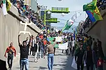 Habbal y Hansawi sostuvieron que la nueva ola de protestas frecuentemente incluía el uso del lema "Al-shab yurid isqat alnizam". (¡La gente quiere la caída del régimen!) utilizada durante la primera Primavera Árabe.[7]