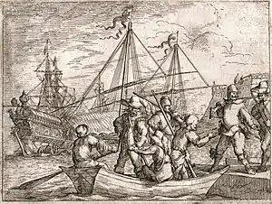 ![]() Galeras y soldados en un grabado de Johann Wilhelm Baur. Circa 1637. | ||||