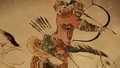 Según la narración de Marco Polo, al comienzo de la batalla los elefantes amedrentaron a los turcos y mongoles, que trataron de huir y facilitaron el avance birmano. Pero el jefe mongol Huthuj conservó la calma, hizo desmontar a los hombres, que se parapetasen tras unos árboles y que disparasen con sus arcos contra los elefantes que avanzaban contra ellos.[nota 7] Las dolorosas heridas que les infligieron hicieron huir a los animales.[25]
