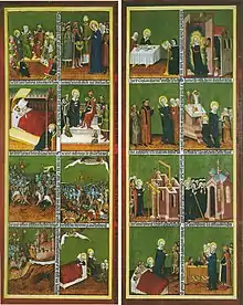 ![]() Los mongoles en Legnica muestran la cabeza del duque Enrique II de Silesia (una iluminación del siglo XV de la Leyenda de Santa Eduvigis) | ||||