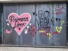 El término "primera línea" se ha utilizado comúnmente en protestas ciudadanas, referido en específico a aquellos lugares de enfrentamientos entre los manifestantes y las fuerzas policiales, donde las balas y las bombas estén siendo lanzadas. Se puede ver este ejemplo en los casos de las protestas de Hong Kong o de Chile[4][5] (véase bloque negro).