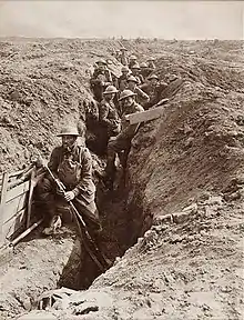 Una primera línea o línea de frente, en terminología militar es la posición o posiciones más cercanas al área de conflicto del personal y el equipo de una fuerza armada, que generalmente se refieren a fuerzas marítimas o terrestres. Cuando se forma un frente (un límite intencional o no intencional) entre lados opuestos, la primera línea es el área donde los ejércitos están en conflicto, especialmente la línea de contacto entre las fuerzas opuestas. En un conflicto militar, cuando te enfrentas a la línea del frente, te enfrentas al enemigo.