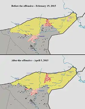 ![]() Al Hasakah antes y después de la ofensiva (inglés). | |||||