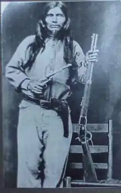 ![]() Fotografía de un cheroqui armado con un fusil y una pistola | ||
