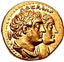Ptolomeo XI hizo matar a su esposa-madrastra poco después de su matrimonio en el año 80 a. C., pero fue asesinado poco después en la revuelta resultante por el asesinato.[53][55][56] Ptolomeo XI, y tal vez su tío Ptolomeo IX o su padre Ptolomeo X Alejandro I legaron el Reino ptolemaico a Roma como garantía real de préstamos, con lo que los romanos disponían de una base legal para hacerse con el control de Egipto, su Estado cliente,[n 11][53][20][57] En cambio, los romanos prefirieron dividir el reino ptolemaico entre los hijos ilegítimos de Ptolomeo IX, otorgando Chipre a Ptolomeo de Chipre y Egipto a Ptolomeo XII Auletes.[53][55]