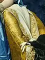 - Detalle de los brazos de Pauline, donde pueden apreciarse el brazalete de la muñeca derecha así como la pulsera de perlas y el anillo de la mano izquierda.