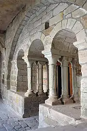 Adosado a la iglesia, se encuentra el claustro de planta cuadrada con pilastras en los vértices. En el centro de cada lado hay otra pilastra y entre ellas dos columnas geminadas, con capiteles, muy simples. Es del siglo XIII.
