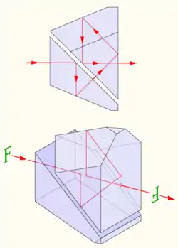 Consiste en un par de prismas separados por un espacio vacío. Las reflexiones totales internas en su interior causan el giro de la imagen. Debido al prisma de techo del segundo prisma la imagen se rota pero no se invierte. Para que la reflexión sea eficiente algunas de las superficies reflectantes deben estar metalizadas ya que el ángulo de incidencia es menor que el ángulo crítico de la reflexión total interna.