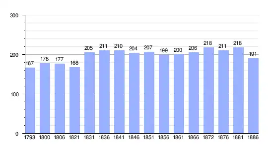 Gráfica de evolución demográfica de Prissé-le-Petit entre 1793 y 1886 |