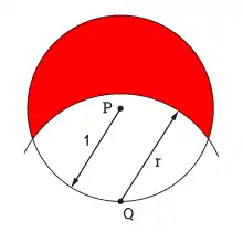 En el caso bidimensional, de acuerdo con el dibujo adjunto, también se puede plantear la cuestión del tamaño del área accesible fuera del círculo rojo. Esto corresponde a la situación de que el animal está atado a un punto del perímetro de un silo cilíndrico.