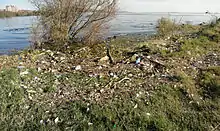 La polución hídrica consiste en modificaciones de origen humano en las propiedades físicas y químicas del agua capaces de provocar daño a los seres humanos y/o a la vida salvaje, incluyéndose aquí tanto ríos y lagos como los manantiales subterráneos y el mar. Sus causas principales derivan de la basura y desechos urbanos y de substancias usadas en la agricultura y en la industria, que son evacuados directamente en las aguas o allá acaban parando llevados por las lluvias o por infiltraciones.[31] Los accidentes con vertidos de substancias nocivas en general tienen un impacto limitado, pero a veces desencadenan efectos de grandes proporciones con reflejos en varios ambientes asociados. Es un ejemplo el derramamiento de lodos tóxicos ocurrido en 2015 en el río Dulce por la rotura de una presa de la minera Samarco, que provocó por lo menos 17 muertes y perjudicó severamente a la biología de todo el río aguas abajo del punto del accidente, además de destruir un pueblo, generar grandes perjuicios económicos y sociales y contaminar un gran área de océano y playas además de su desembocadura, siendo considerado el mayor desastre ambiental de la historia del país.[32][33] También son consideradas formas de polución la contaminación salina y la mineralización de los manantiales. [34] El crecimiento acelerado de la población humana, con el aumento en la demanda de agua para consumo y otras actividades, reduce los stocks disponibles, aumentando el problema porque menores cantidades de líquido son menos capaces de diluir los contaminantes.[31][35][36]