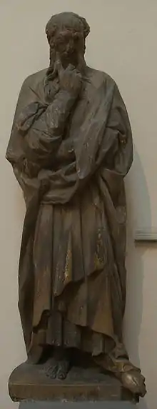 El personaje de la estatua no ha sido claramente identificado por la falta de atributos iconográficos, por lo que es llamado por el nombre convencional de Profeta pensativo, a causa del gesto que realiza con la cabeza baja y la mano apoyada en el mentón. La estatua se caracteriza por un gran realismo y una profunda intensidad en la expresión con un sentido de la energía retenida como las mejores obras de Donatello.