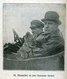 Las leyendas de Mussolini desafiando a la muerte durante la Primera Guerra Mundial y los intentos de asesinato se distribuyeron para darle al dictador un aura mítica e inmortal. Se dijo que el cuerpo de Mussolini había sido perforado por la metralla al igual que San Sebastián había sido perforado por las flechas; La diferencia es que Mussolini había sobrevivido a esta prueba. También fue comparado con San Francisco de Asís, quien, como Mussolini, "sufrió y se sacrificó por los demás".[16] El origen humilde de Mussolini se describió con paralelos explícitos con la vida de Cristo: al escribir sobre su padre y madre herrero, la propaganda fascista los presentó simbólicamente como la Sagrada Familia ("No son más que María y José en relación con Cristo"). Su ciudad natal, Predappio, se desarrolló como un lugar de turismo de masas y peregrinación simbólica.[17] El Vaticano implicaba que los poderes celestiales sabían que Mussolini había salvado a Italia del bolchevismo y, por lo tanto, lo había protegido. El papa Pío XI se refirió a él como "el hombre de la Providencia" durante las secuelas del Tratado de Letrán. La prensa describió sus discursos como reuniones sacramentales del Duce y la gente.[18] El estilo melodramático de oratoria de Mussolini era pantomímico y litúrgico, con poses exageradas y movimientos de las manos y variaciones notables en el tono y el tono de su voz. Mussolini pretendía que sus discursos fueran representaciones teatrales inspiradoras de la fe, afirmando que "la multitud no tiene que saber, debe creer".[19]