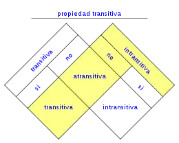 En una relación binaria homogénea, la transitividad, determina la posible relación de un elemento con un segundo, la de este segundo con un tercero y la del primero con el tercero, en todos los casos, nunca o a veces.
