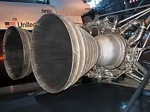 Los motores principales del transbordador espacial usan un sistema de pivotes acanalados, que permite al hidrógeno calentado del precombinador vaporizar el oxígeno líquido que fluye por el centro de los difusores,[11] lo que mejora la velocidad y la eficiencia del proceso de combustión; los motores anteriores como el F-1 utilizado en el programa Apolo tenían problemas con las oscilaciones que podían provocar la destrucción de los motores, pero esto no era un problema en el transbordador debido a este detalle de diseño.