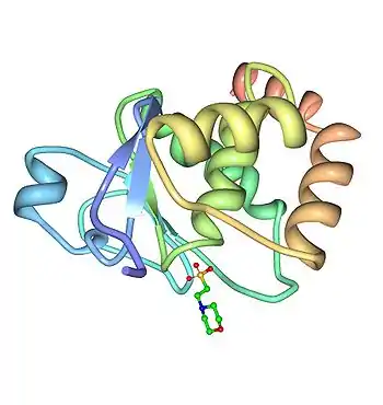 Estructura 3D de la proteína fosfatasa dual específica DUSP18 humana. PDB 2ESB.