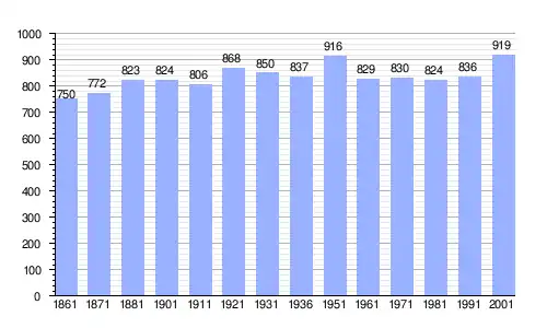 Gráfica de evolución demográfica de Provaglio Val Sabbia entre 1861 y 2001 |