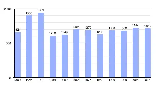 Gráfica de evolución demográfica de Provenchères-et-Colroy entre 1800 y 2013 |