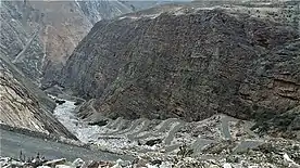 La segunda forma de llegar es una ruta de 72 km, a través de la carretera nacional PE-14N asfaltada que nace en Casma, como desvío de la carretera nacional PE-1N (Carretera Panamericana Norte). A 33 km de Huaraz se toma un desvío al sur en el abra Callán Punta situada a 4200 msnm que va al Distrito de Coris, a través de la trocha carrozable AN-1168, y luego se sigue un desvío al sureste, hacia el Distrito de La Merced, a través de la trocha AN-1178.