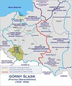 Después de la invasión de Polonia en 1939, la Alta Silesia polaca, incluyendo la ciudad industrial polaca de Kattowitz, fue directamente anexada a la Provincia de Silesia. Este territorio anexado, también conocido como Alta Silesia Oriental (Ostoberschlesien), se convirtió en parte del nuevo Regierungsbezirk Kattowitz.