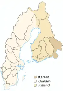 La Carelia finlandesa estuvo históricamente bajo influencia occidental, religiosa y políticamente, y estaba separada de Carelia oriental, que estuvo dominada por Nóvgorod y sus estados sucesores desde la Edad Media en adelante.