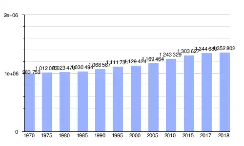 Gráfica de evolución demográfica de Provincia de Escania entre 1970 y 2018 |