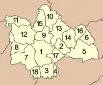Esta provincia tailandesa se encuentra subdividida en una cantidad de distritos (amphoe) que aparecen numerados a continuación: