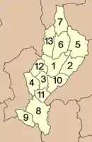 La provincia se divide en 13 distritos (Amphoe). Estos a su vez están subdivididos en 100 comunas (tambon) y 855 aldeas (muban).