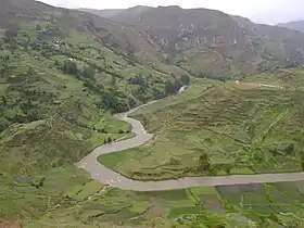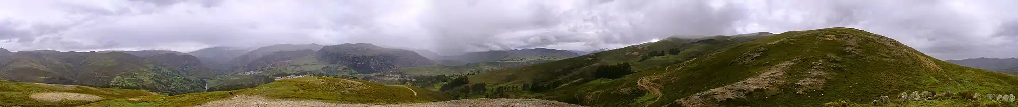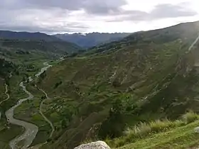 ![]() Vista del cerro Gongui rodeado por el río Lauricocha en el distrito de Jivia (centro).