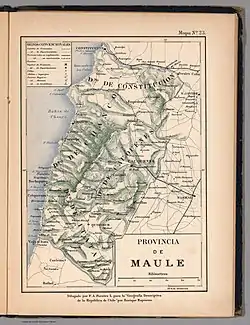 ![]() Mapa de la provincia chilena de Maule, hacia 1903. | |||||||||||||||||||||||||||||||