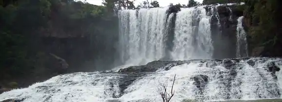 En el distrito de Pich Chandá, a 43 km de la ciudad de Sen Monorom por una difícil carretera. La cascada es considerada la más hermosa de la región y tiene tres caídas.