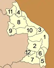 Esta provincia tailandesa se encuentra subdividida en una cantidad de distritos (amphoe) que aparecen numerados a continuación: