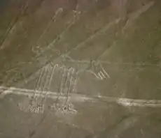 - Líneas de Nasca: ubicada en la pampa de San José y sobre una extensión de 50 km, los geoglifos representan figuras de animales y plantas, algunas de estas figuras pueden llegar a medir hasta 300 metros de longitud y ocupar una superficie de 1000 m².