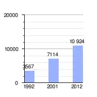 Gráfica de evolución demográfica de la Provincia de Sabaya entre 1992 y 2012 |