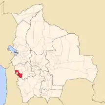 La provincia está en la parte occidental del departamento de Oruro, al oeste del país. Limita al norte con la provincia de Sajama, al oeste con la República de Chile y la provincia de Mejillones, al sur con el departamento de Potosí, y al este con las provincias de Ladislao Cabrera y Litoral de Atacama. Se encuentra a una altitud media de 3975 msnm.[8]