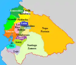 ![]() Localización de la provincia de Santiago Zamora en Ecuador en 1920. | ||||||||||||||||||||||||||||||||||