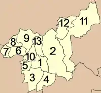 La provincia se divide en 13 distritos (Amphoe). Los distritos se subdividen a su vez en 111 comunas (tambon) y 965 villas.