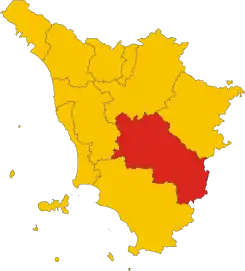 Limita al norte con la ciudad metropolitana de Florencia, al noroeste con la provincia de Arezzo, al sureste con la Región de Umbria (provincia de Perugia y provincia de Terni), al sur con la Región de Lacio (Provincia de Viterbo), al suroeste con la provincia de Grosseto) y al oeste con la provincia de Pisa).
