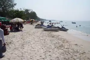 Playa de Ochheuteal, la más popular de Sihanoukville, cercana al centro de la ciudad.