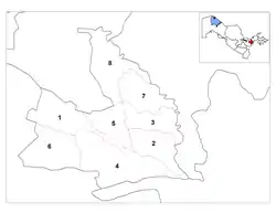 Sirdarín se divide en 9 distritos administrativos. Además de la capital, otras ciudades importantes son: Baxt, Boyovut, Farhod, Qahramon, Sayhun, Sirdaryo, Shirin y Yangiyer.