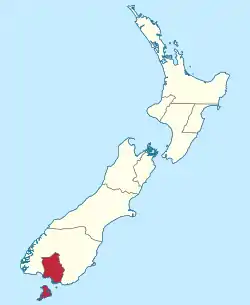 ![]() Localización de la provincia de Southland en Nueva Zelanda | |||||||||||||||||||||||||||||||