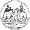 El sello provincial muestra la batalla en elefante entre el rey Naresuan el Grande y el príncipe heredero de Birmania en 1592, que tuvo lugar en Suphanburi.
